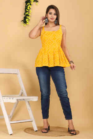 “A comfortable and stylish short kurti, perfect for everyday wear. Made with soft fabric and a simple design, it’s easy to pair with jeans, leggings, or palazzos for a casual, elegant look.”