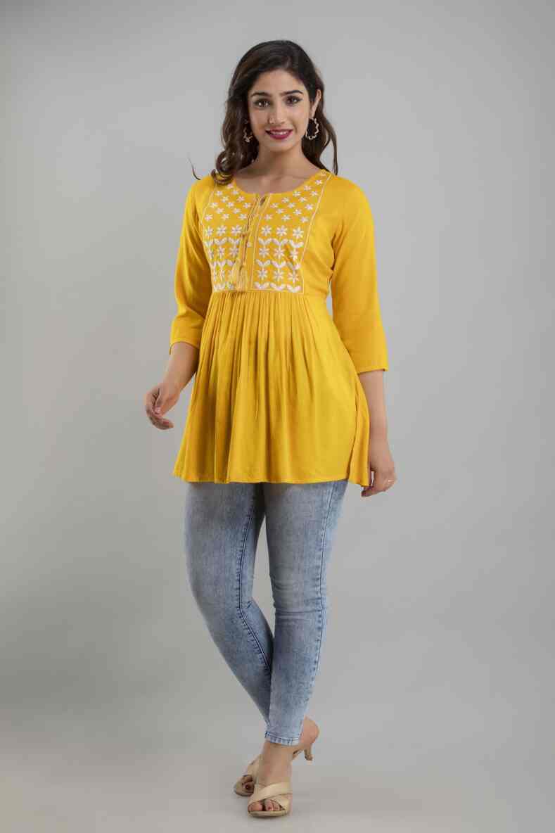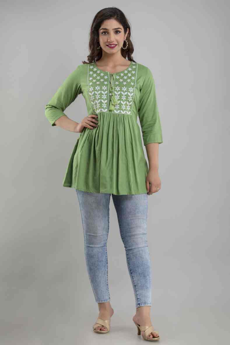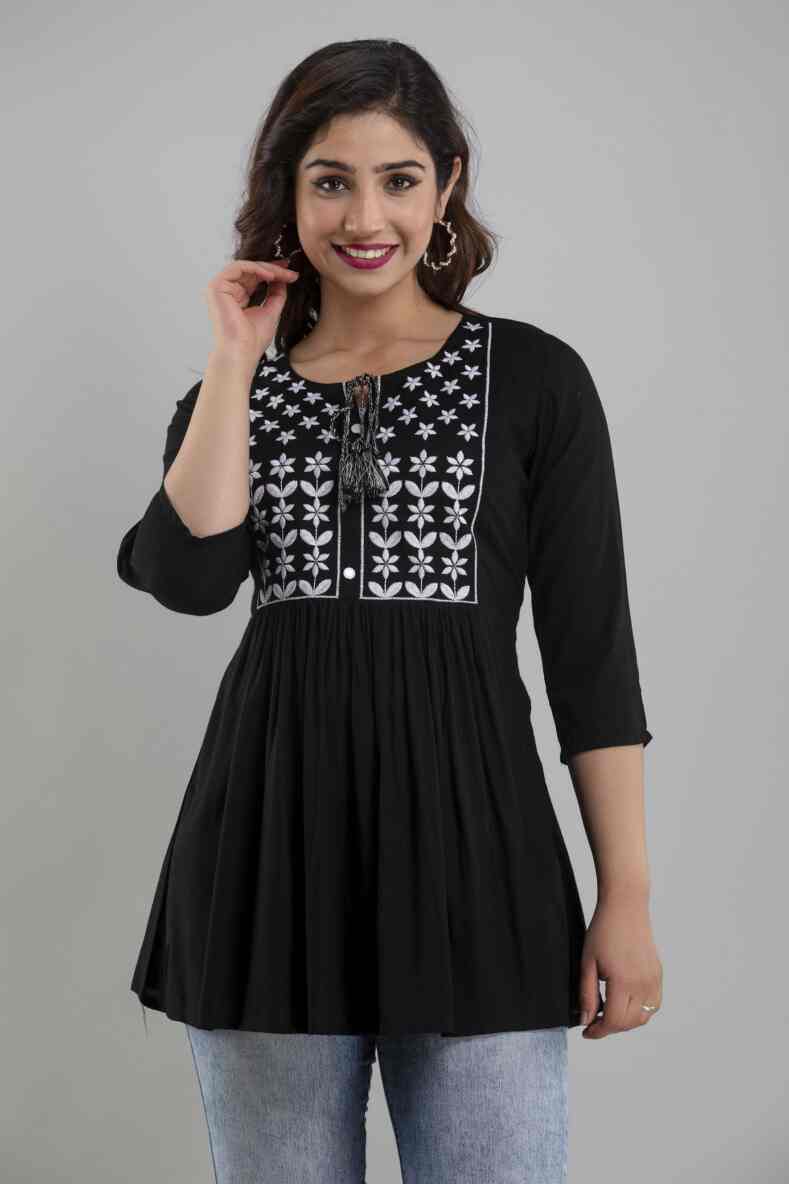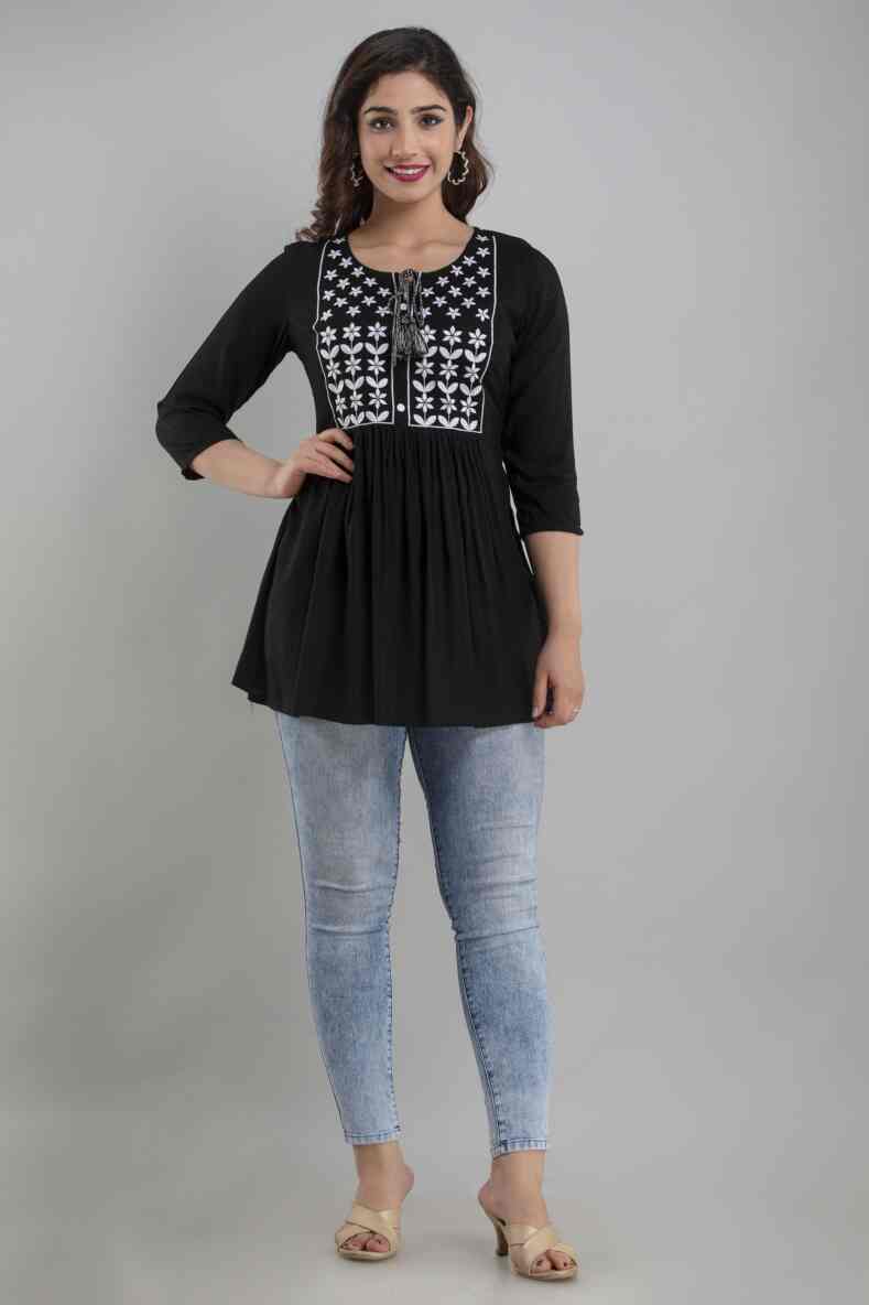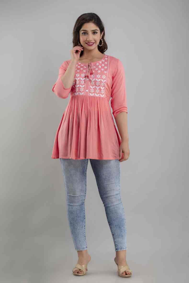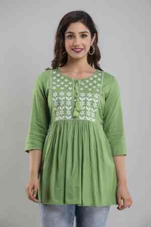 “A trendy and comfortable crop top with a flattering fit, perfect for pairing with high-waisted jeans, skirts, or shorts for a stylish everyday look.”