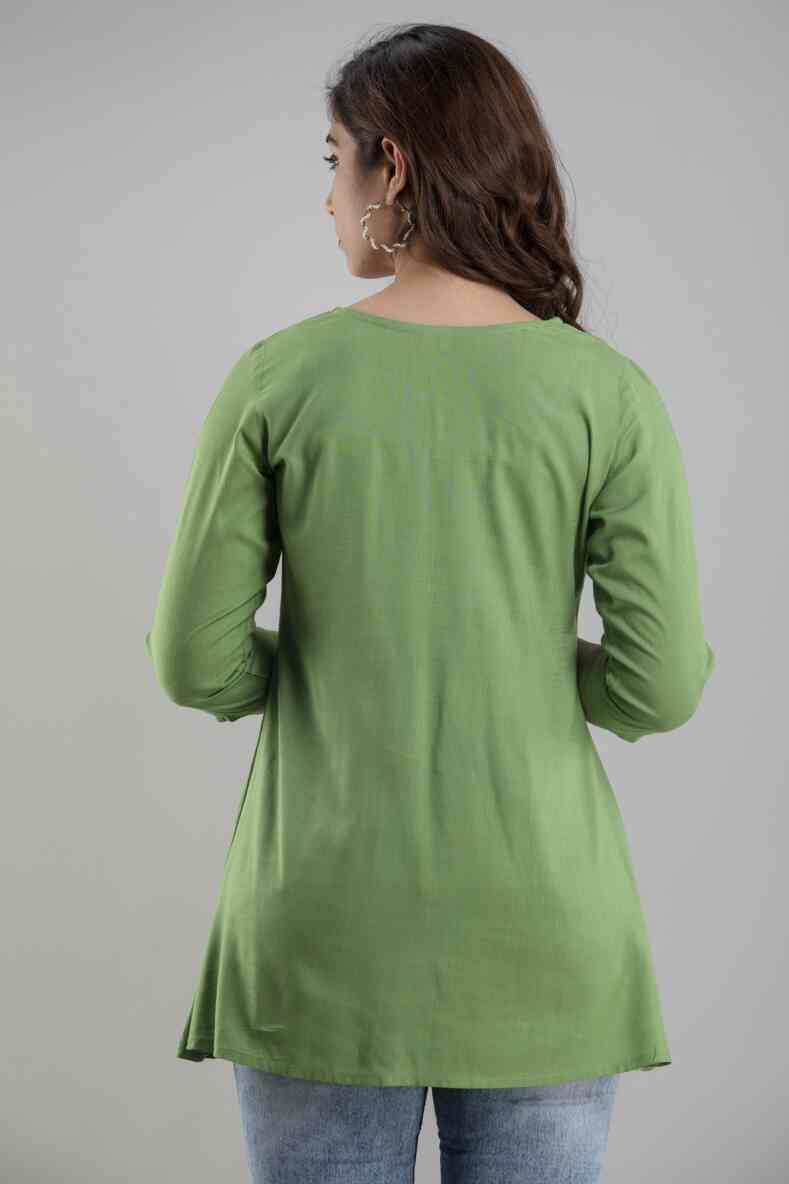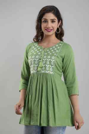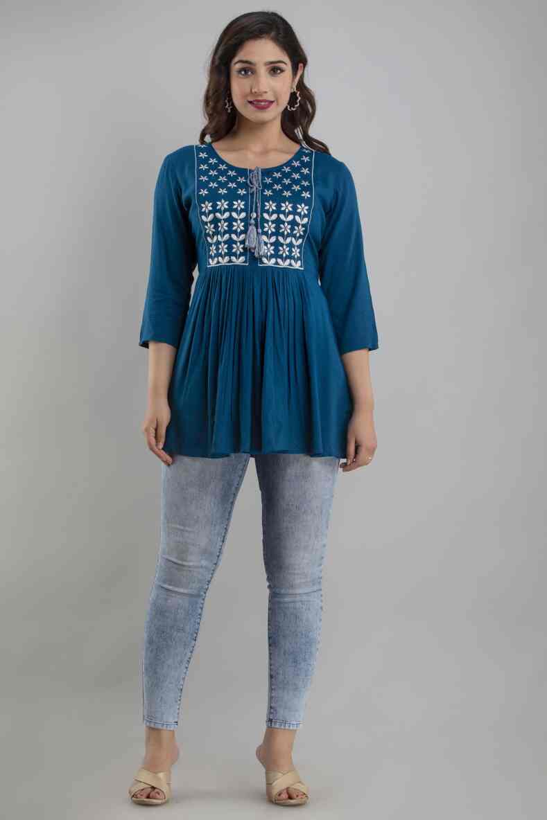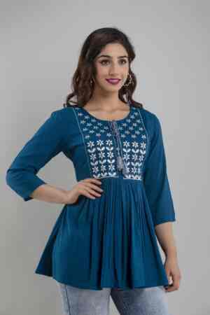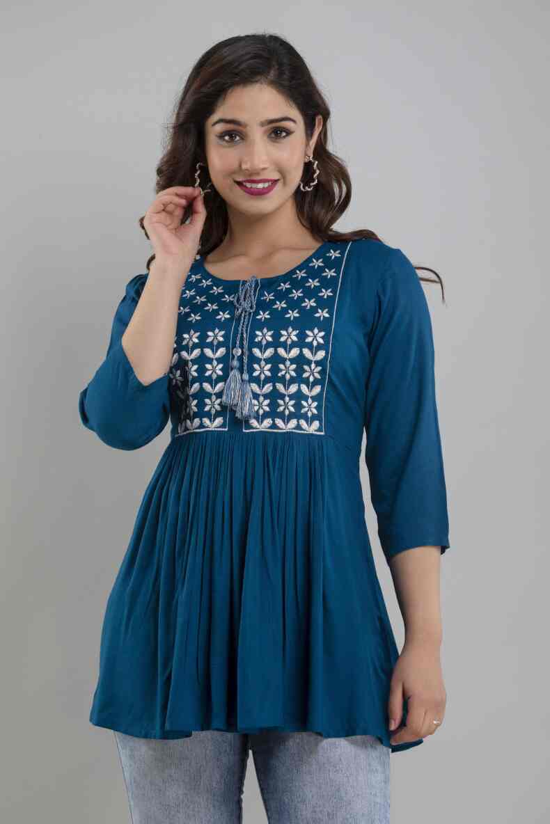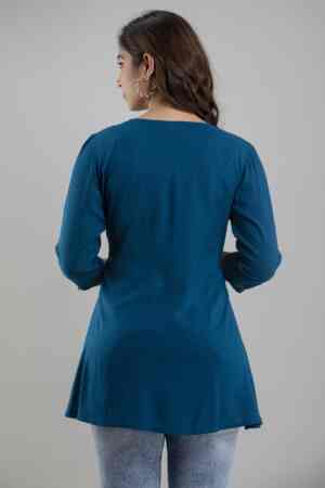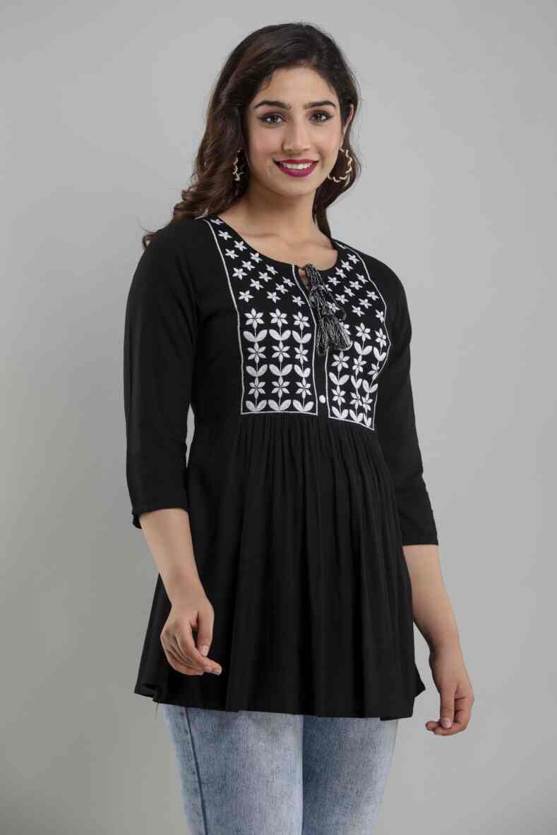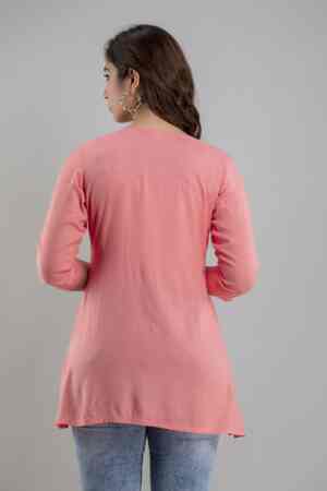 “A trendy and comfortable crop top with a flattering fit, perfect for pairing with high-waisted jeans, skirts, or shorts for a stylish everyday look.”